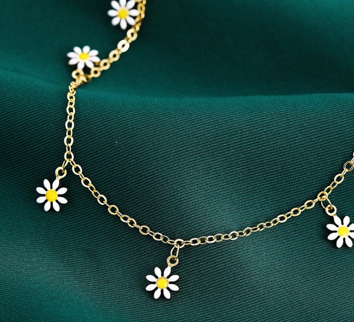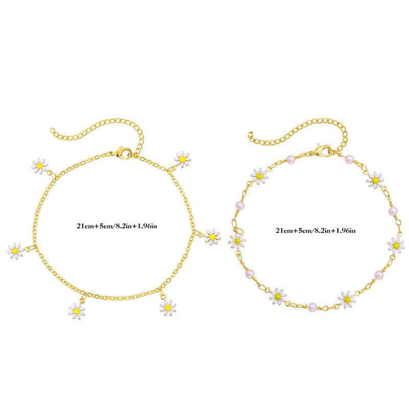 Fashion Foot Ornaments Summer Beach Daisy Pearl Anklet For Women