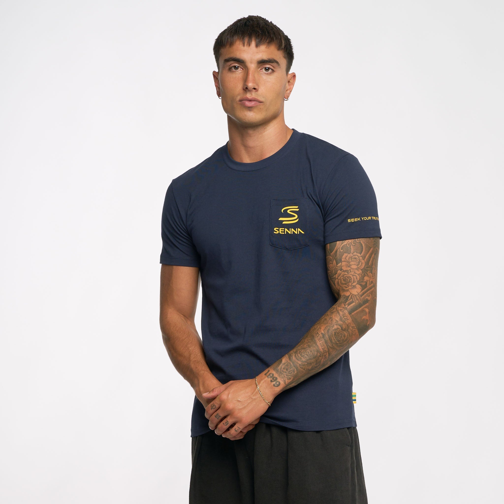Upgrade your wardrobe with the Senna Men's Legacy Pocket Tee. Made with 180GSM 100% BCI cotton jersey, this tee offers a comfortable and sustainable option. The raised rubber print logo, chest pocket, and left sleeve add a modern touch, while the twin needle cuff and hem finish and rib neck collar provide durability. Complete with a side woven Senna stripe tab for added style.