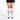These white compression knee-high socks are accented with white, pink, black, and grey calf stripes along with black toe and heel boxes.