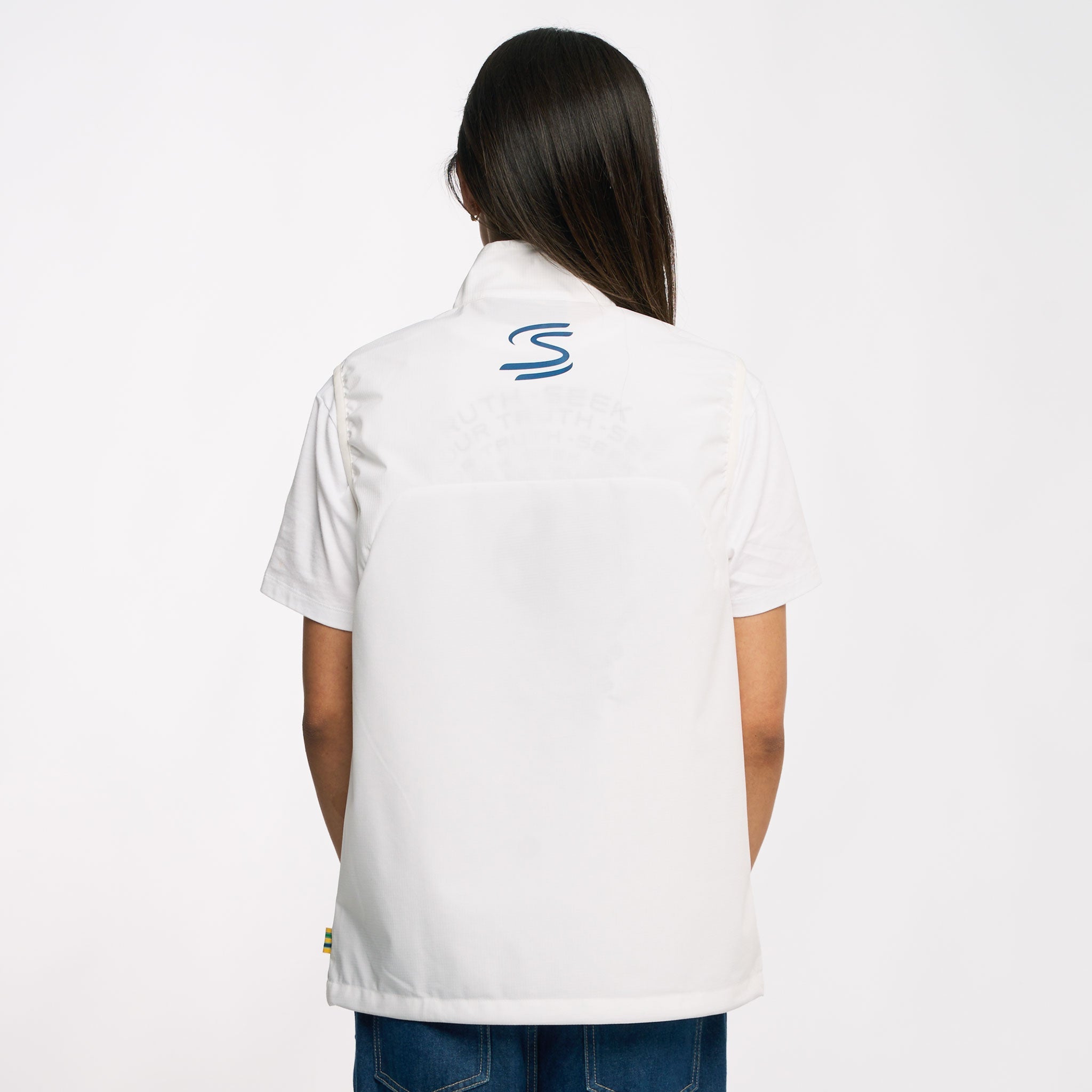 Get ready for any weather with the Senna Stripe Windbreaker Vest. Made with recycled nylon and a water repellent finish, this vest is both eco-friendly and functional. The invisible zipper and adjustable hem toggle provide a sleek look and customizable fit, while the heat transfer logos add a touch of style. Stay comfortable and stylish in the Senna Vest!