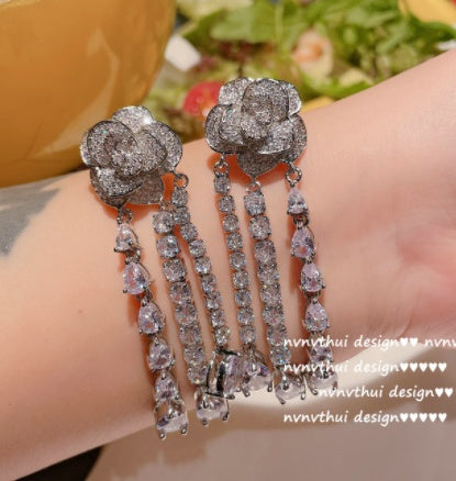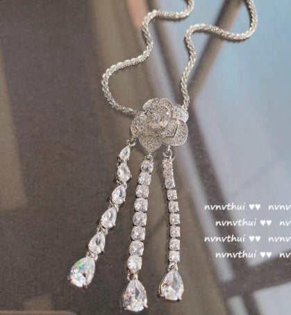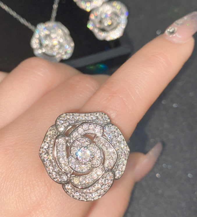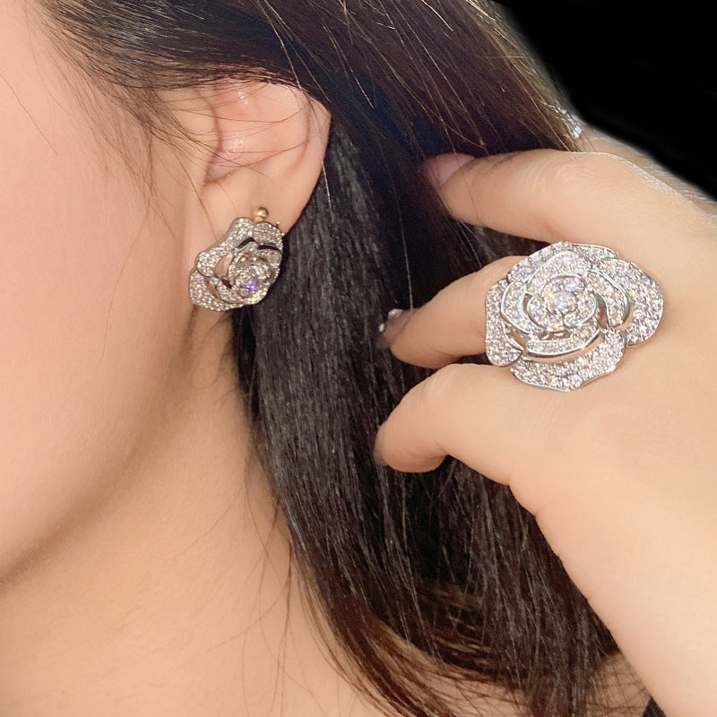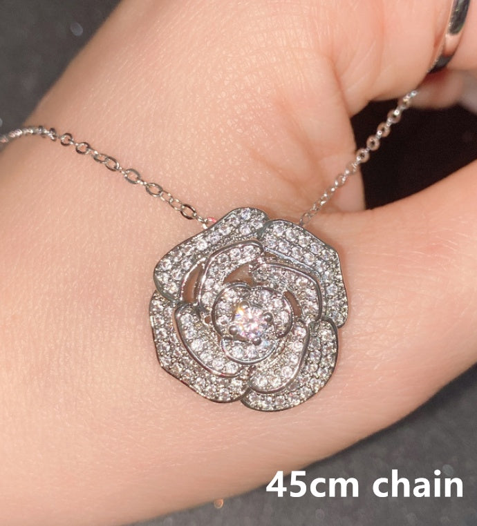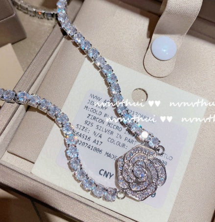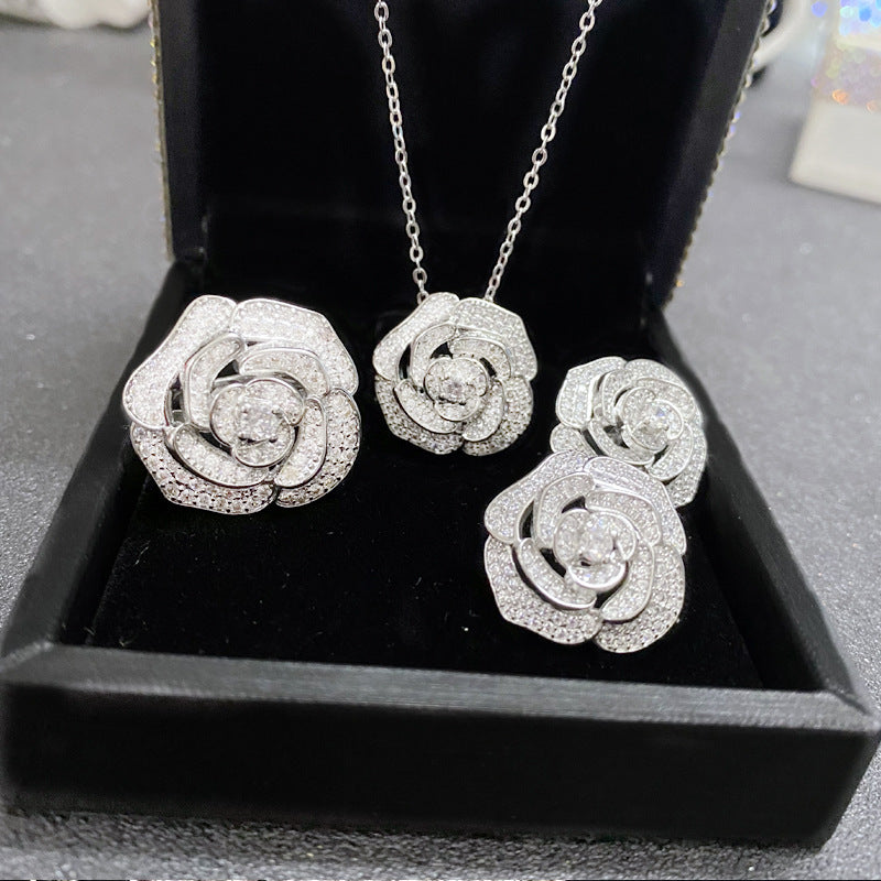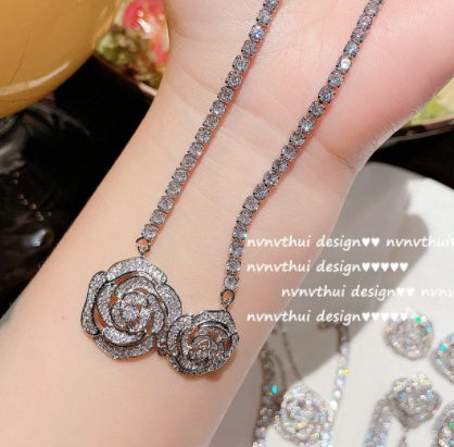 Camellia Full Zirconium Ring Micro Setting Stud Necklace