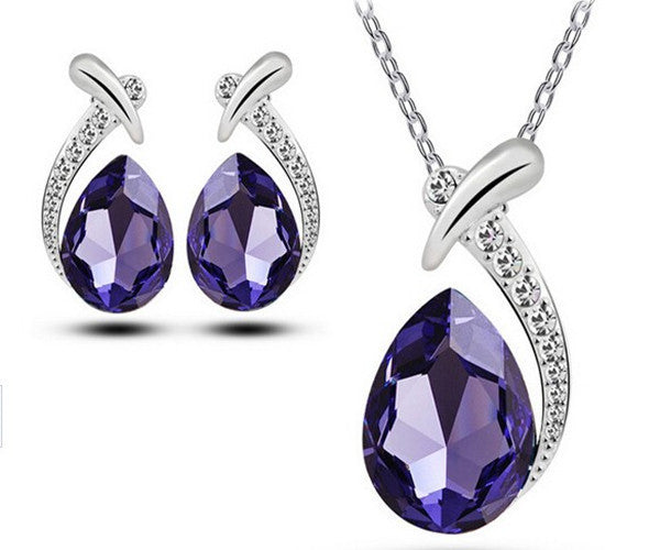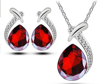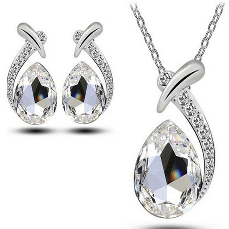 Crystal Necklace Water Drop Korean Style Clavicle Chain Earring Set
