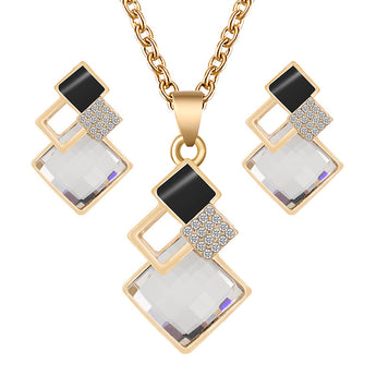 Square Glass Crystal Inlaid Pendant Necklace Earrings Jewelry Set