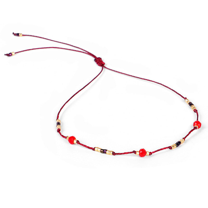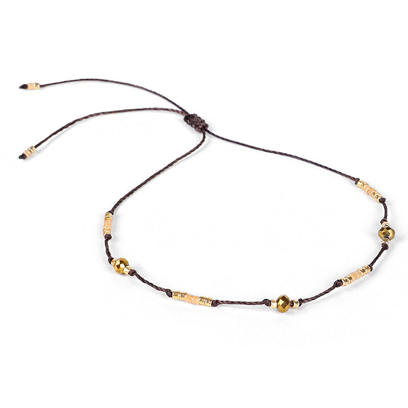 Bohemian Holiday Style Anklet Color Rice Bead Wax Thread Beaded Anklet