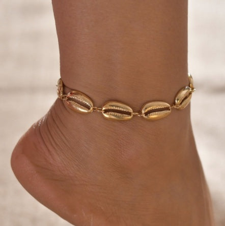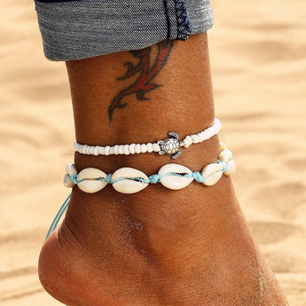 Fashion Shell Rice Beads Hand-Woven Adjustable Anklet Ocean Wind Beach Accessories
