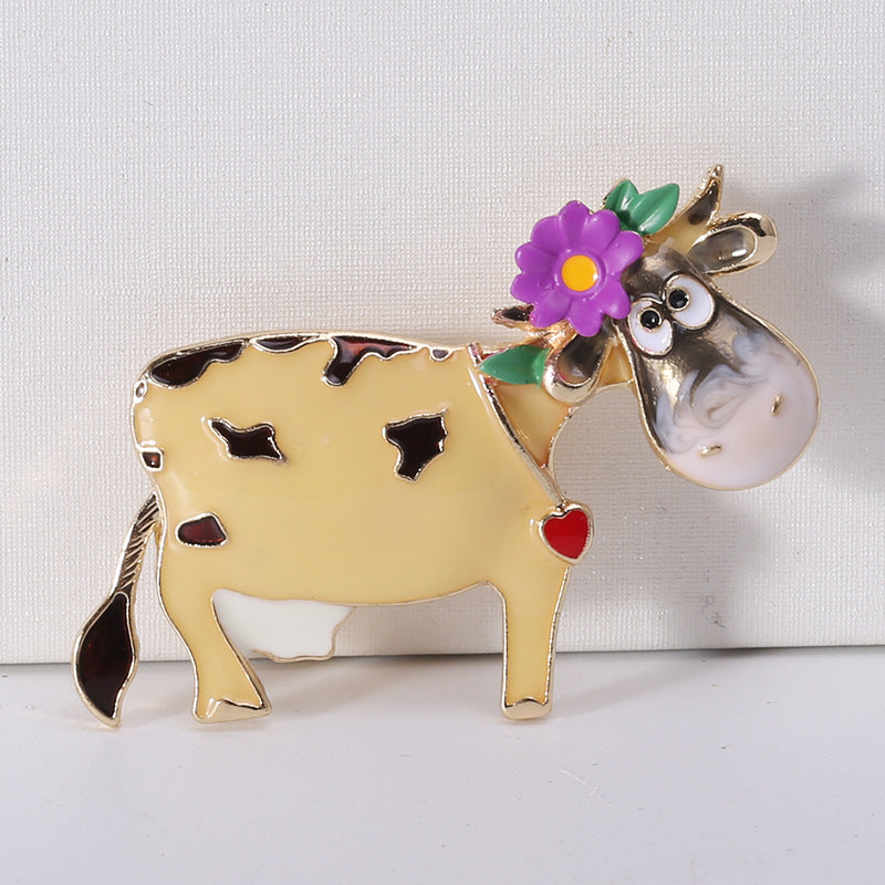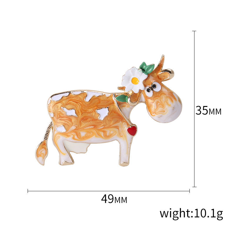 Fashion Alloy Dripping Oil Small Flower Cow Brooch