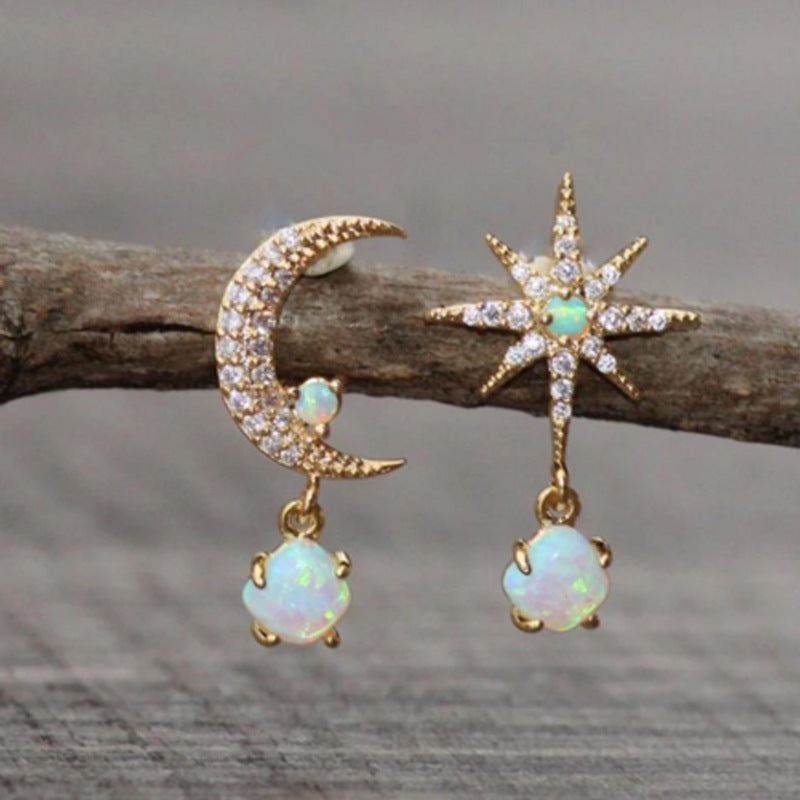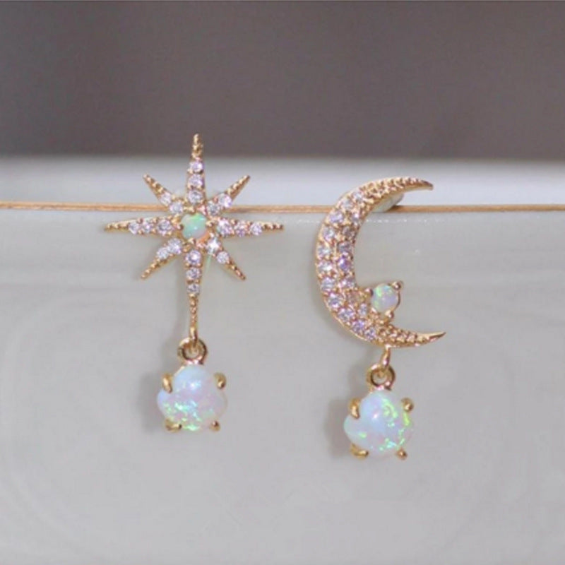 Fashion Women's Asymmetric Moon Star Earrings