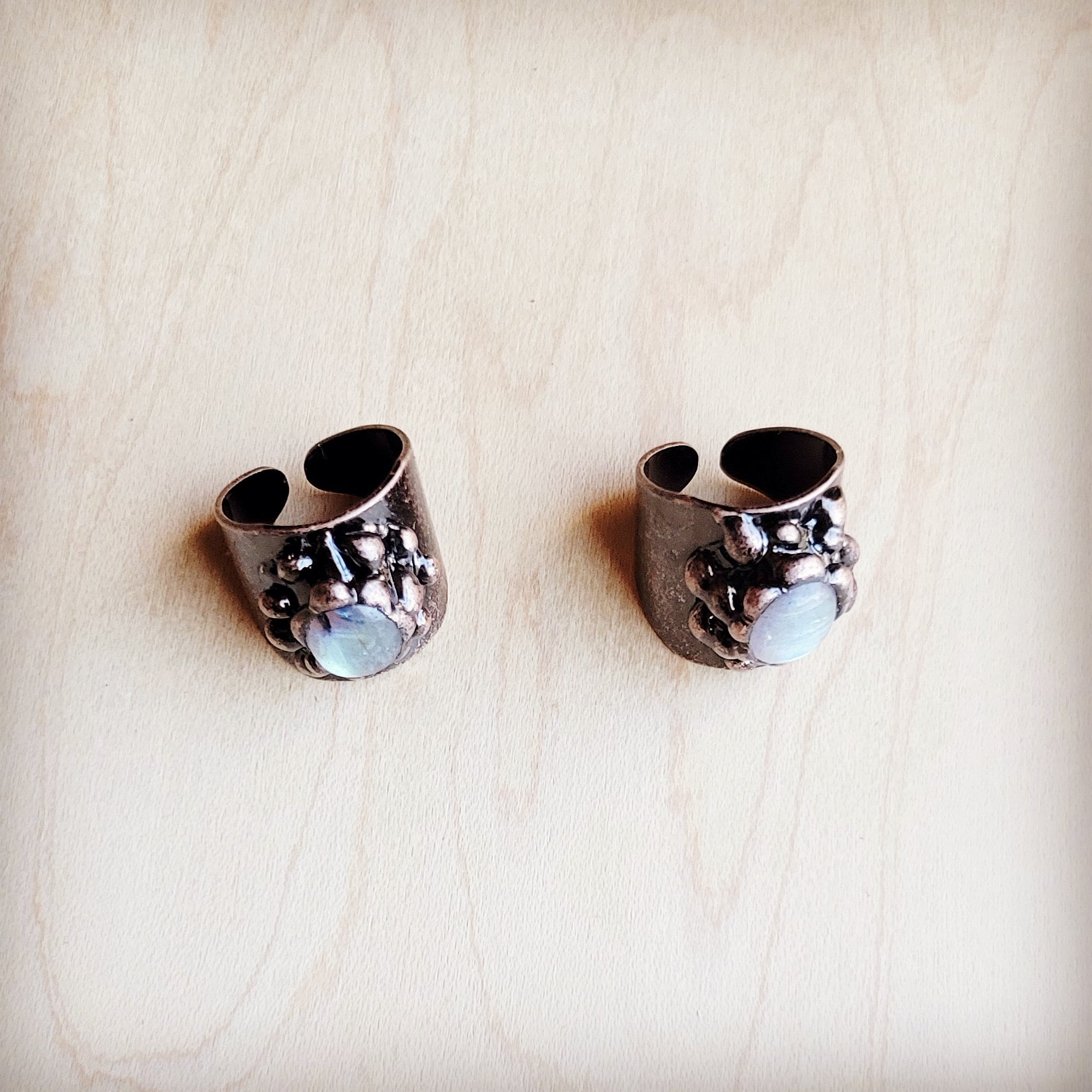 This stunning Labradorite Ring in Antique Copper exudes boho western style and perfectly coordinates with the matching necklace and bracelets. The antique copper setting beautifully complements the Labradorite, making it a unique and eye-catching addition to your jewelry collection.