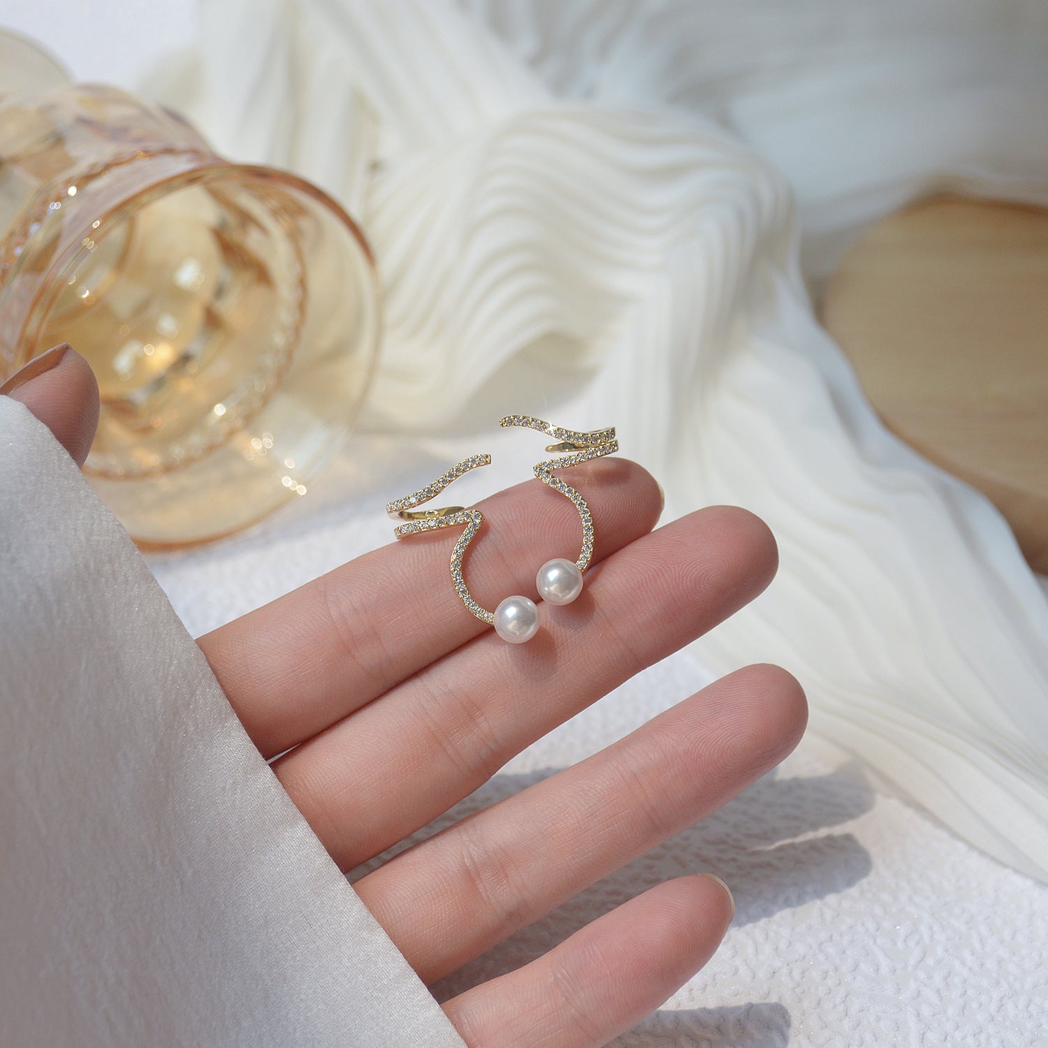 Micro Inlaid Zircon Pearl Earrings Literary Integrated