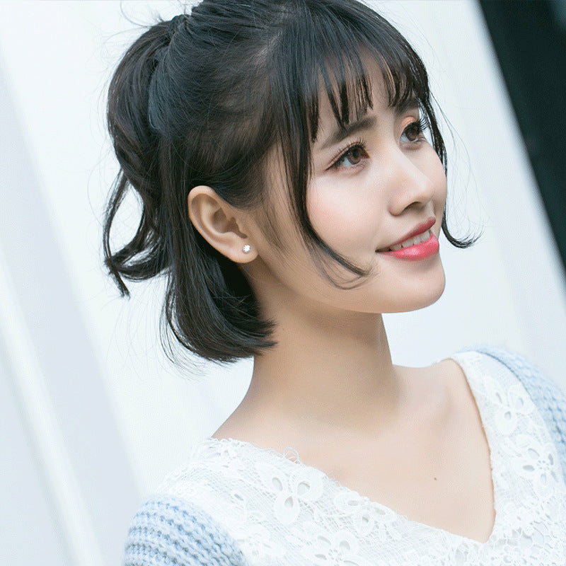 S925 White Stud Earrings With Diamonds Fashionable And Simple
