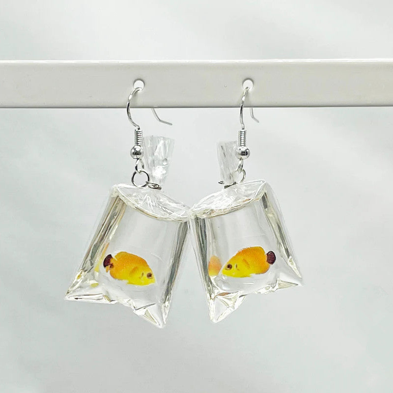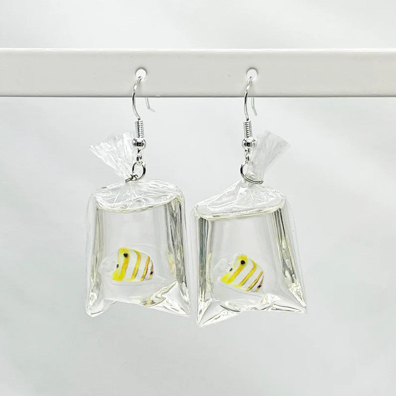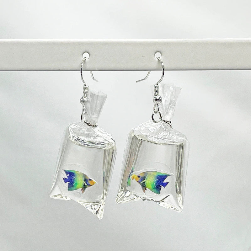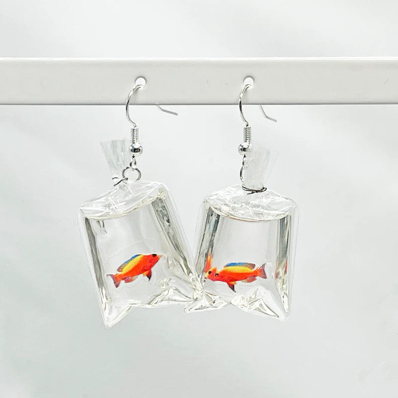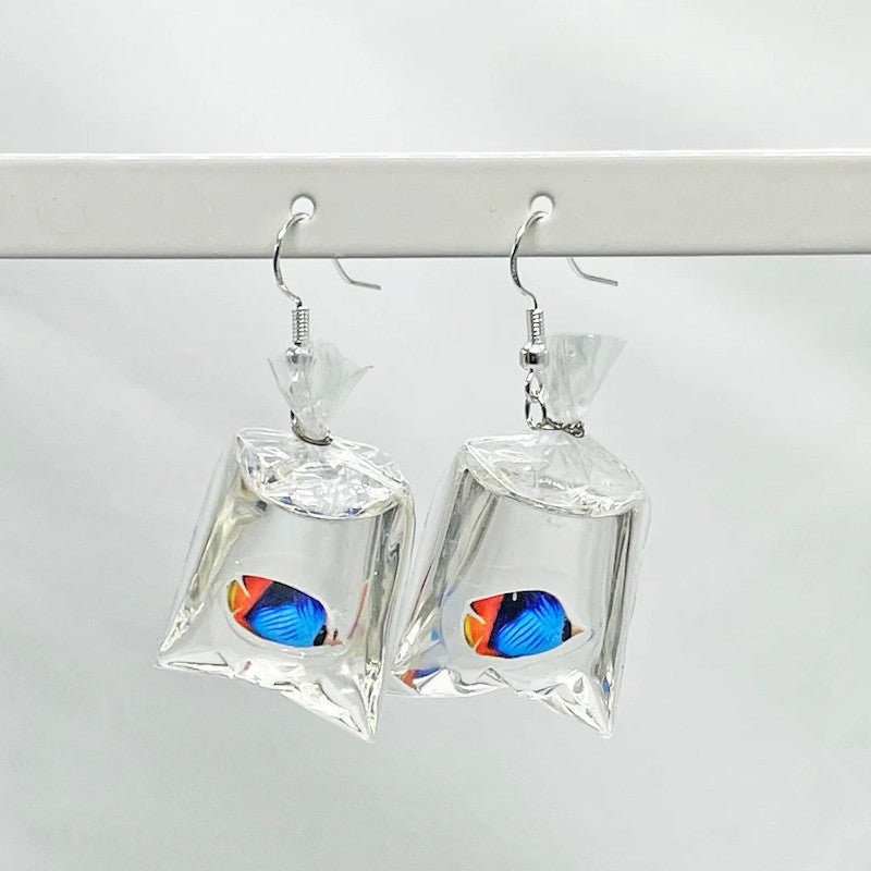 Water Bag Earrings Tropical Fish Clear Resin Christmas