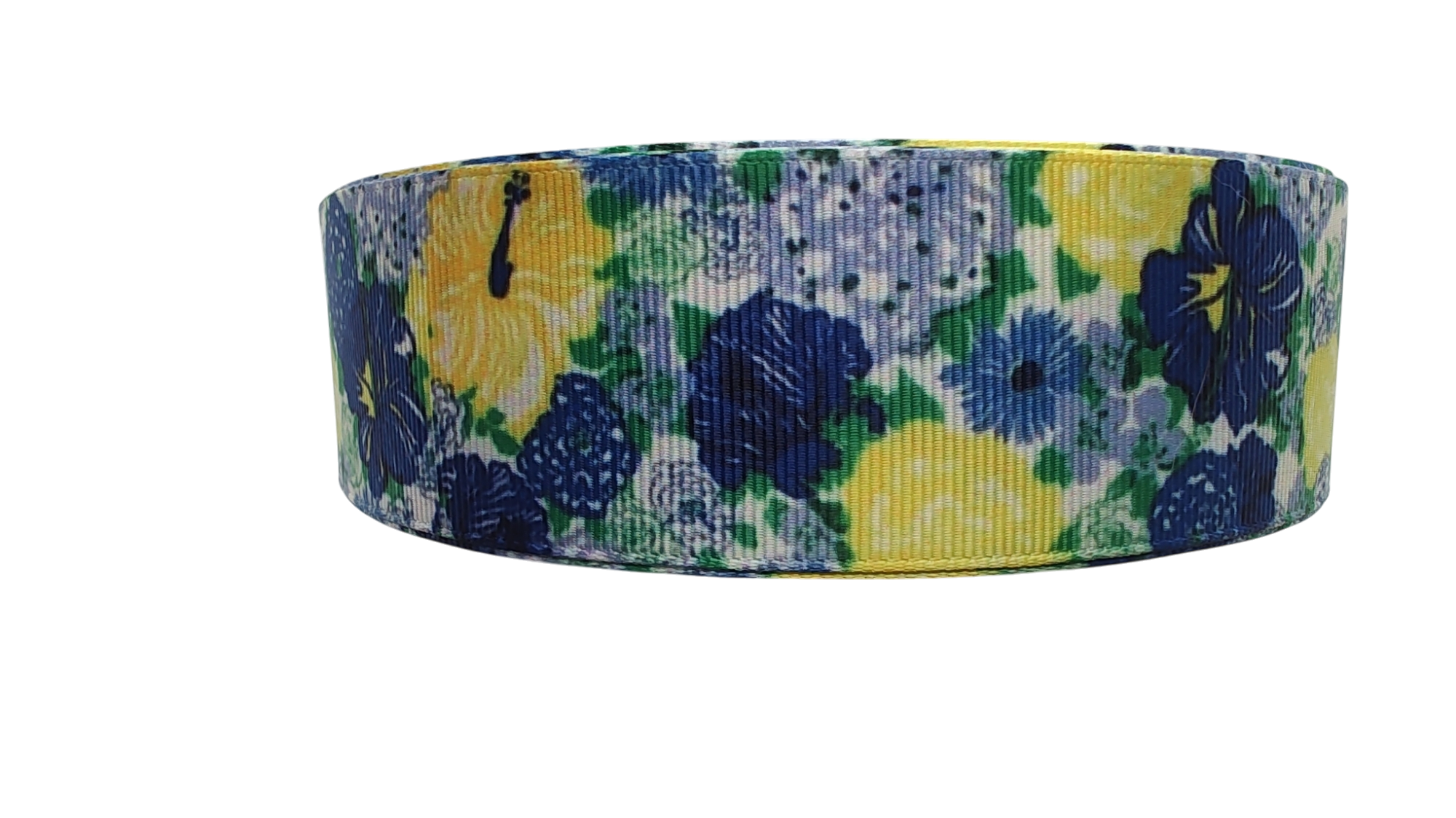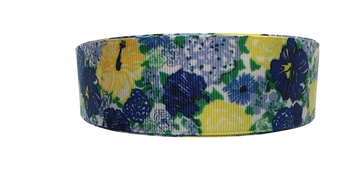 1.5" Wide Blue & Yellow Floral Nylon Dog Collar