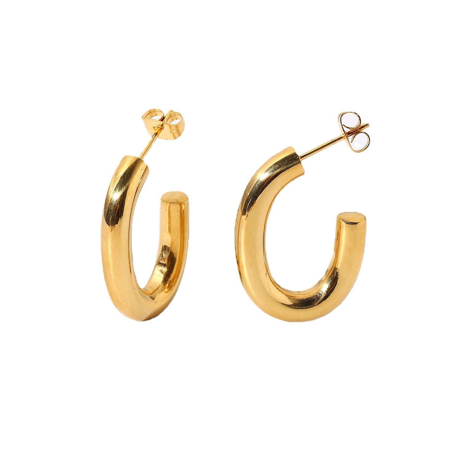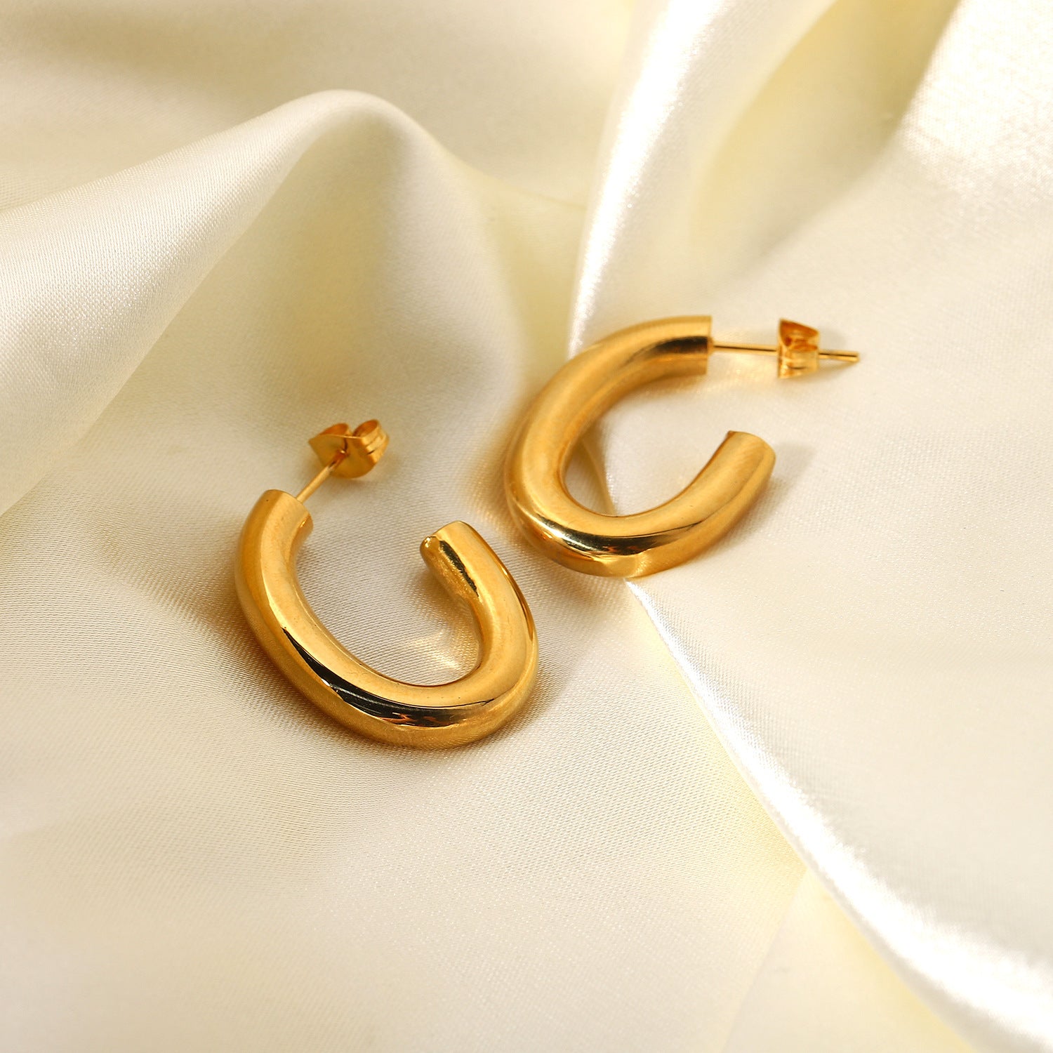 18K Gold Plated Stainless Steel C- Shaped Earrings