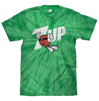 Bursting with crisp and refreshing lemon-lime flavor in every drop - bubbly 7UP is definitely our favorite un-cola! We've paid tribute to this delicious soda with a throwback graphic tee featuring the classic 7UP logo and cartoon mascot "Cool Spot". To complete the vintage look and feel on this retro tee - we've printed the graphic on a soft, Spider Kelly tie dye t-shirt.