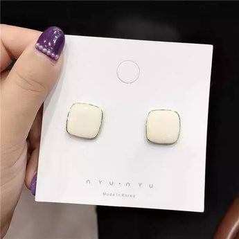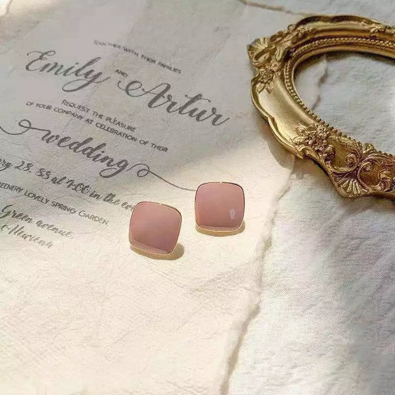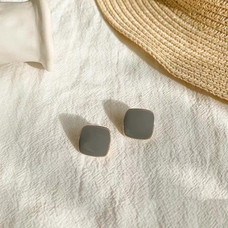 925 Silver Needle Square Simple Color Stud Earrings For Women