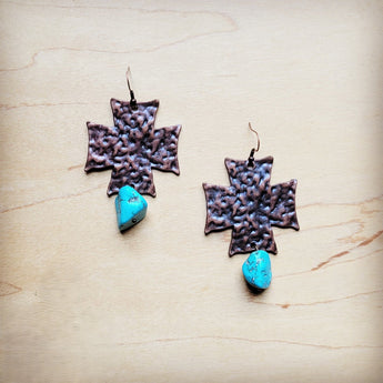 Expertly crafted with beautiful turquoise chunky stones, these handmade copper cross earrings are the perfect addition to your boho fashion collection. Elevate any outfit with the unique and genuine stone design, creating a statement piece that is both stylish and natural. Embrace your individuality with these earrings.