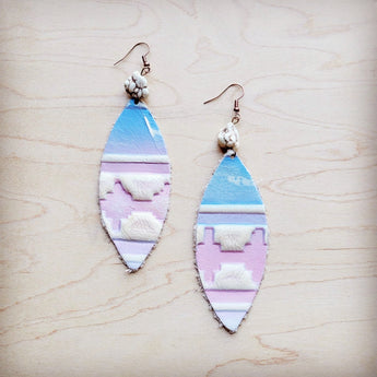 **Leather Oval Earrings in Pastel Navajo w/ Turquoise Accent 224s
