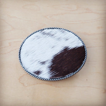 **Rope Edge Brown White Hide Leather Belt Buckle 907LL