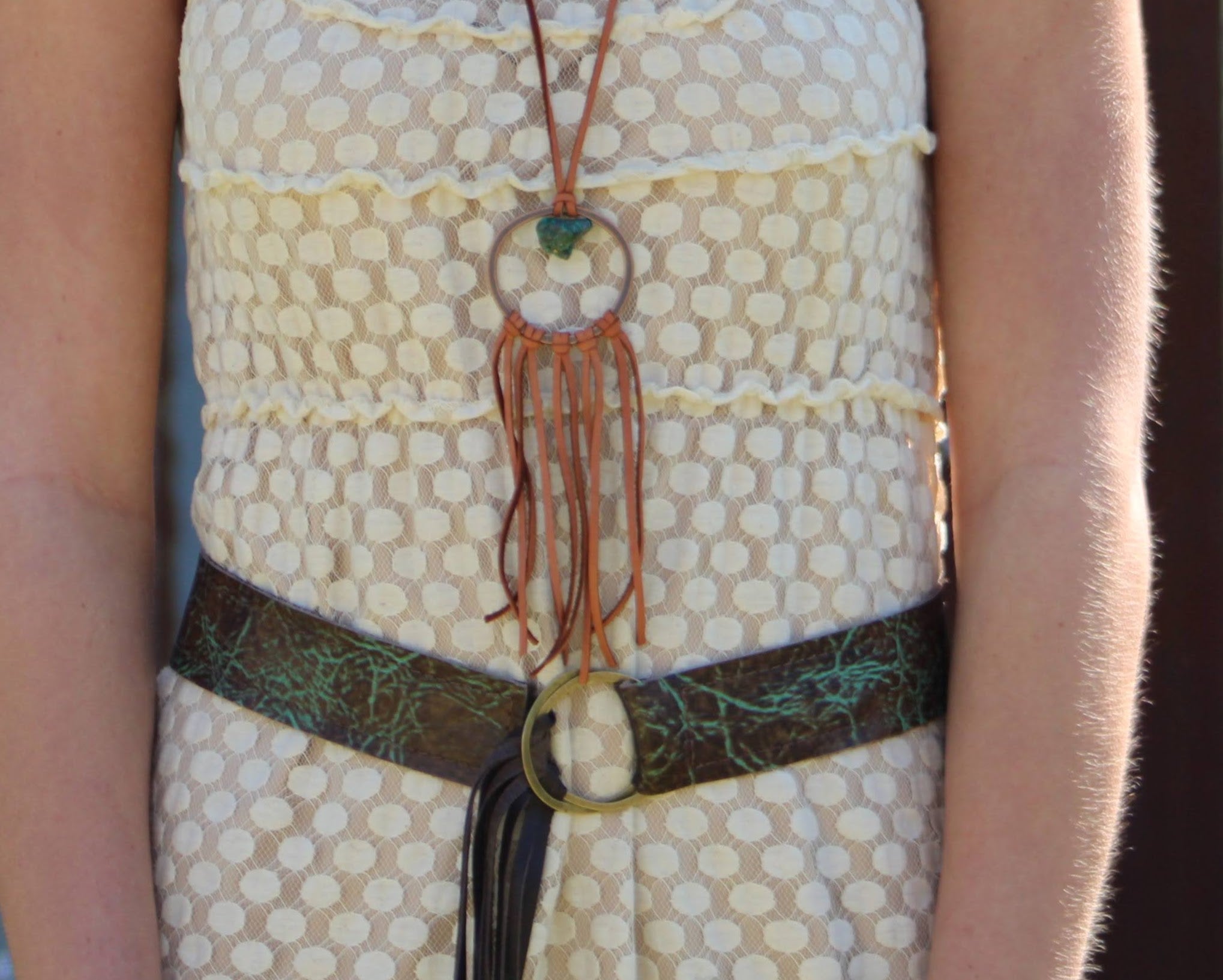 **Tan Vegan Leather Dream Catcher Necklace with Natural Turquoise 246t