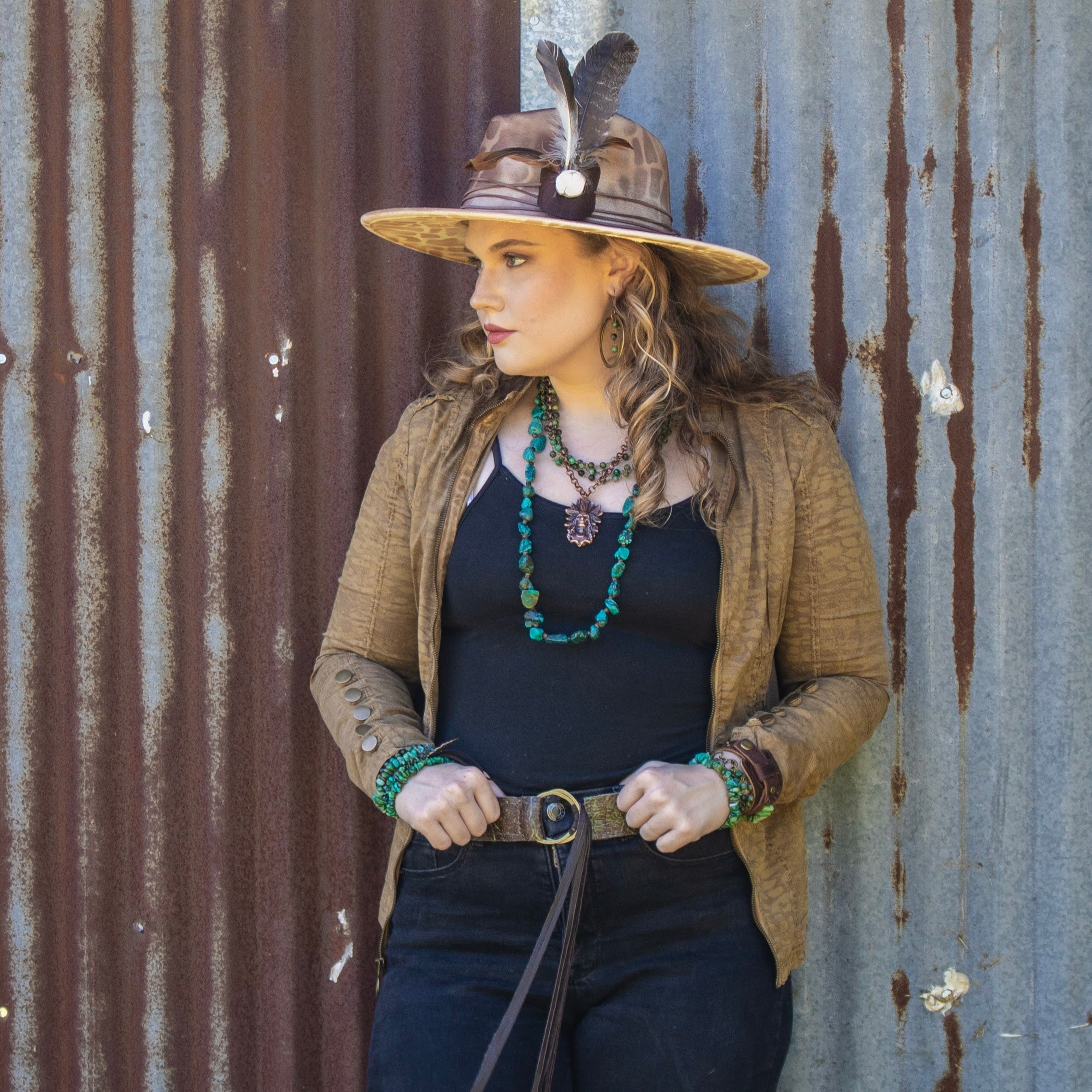 Western Copper Hoop Earrings w/ African Turquoise Beads 200t