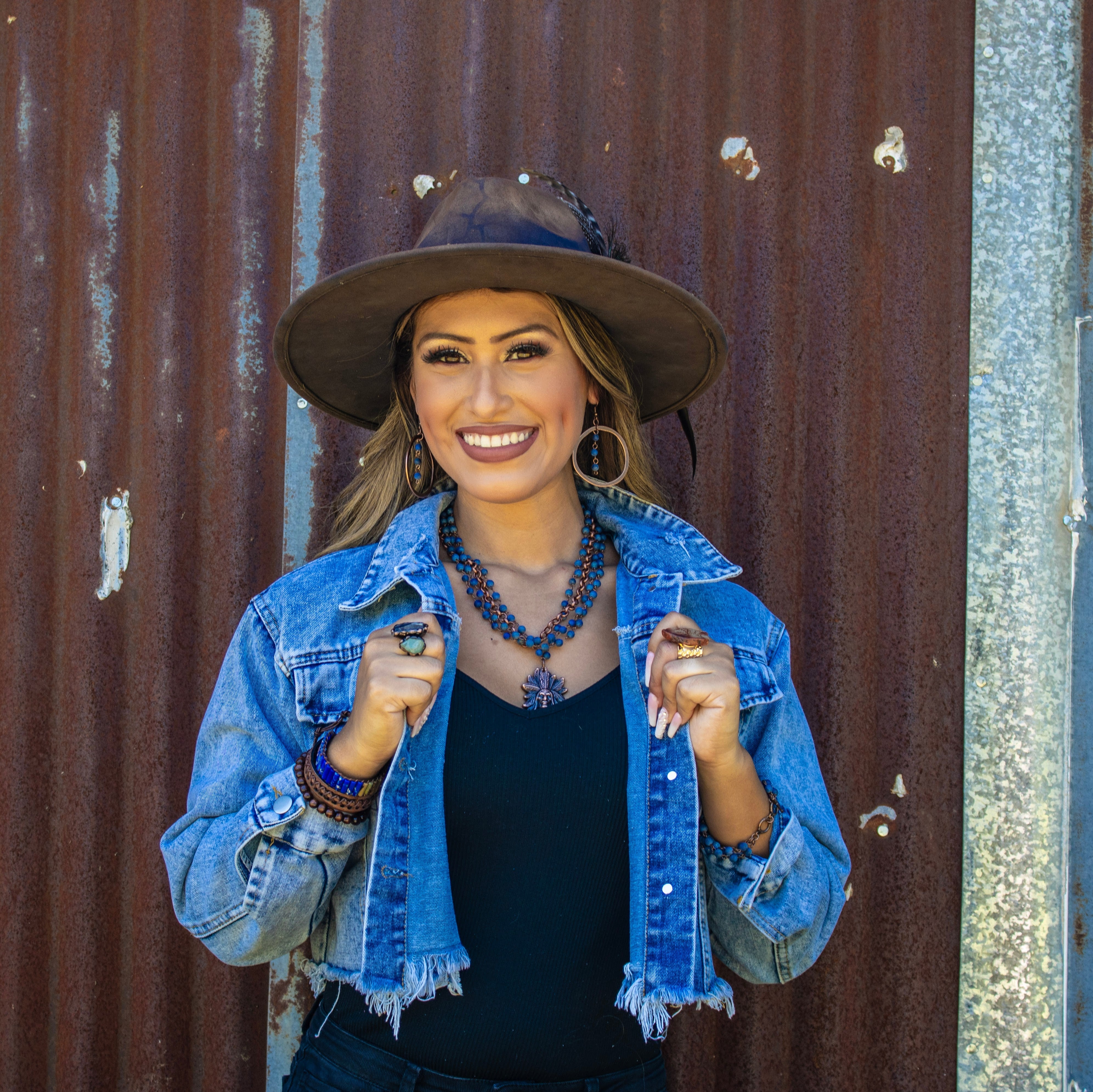 These stylish Copper Hoop Earrings feature genuine lapis beads for a unique western-inspired look. Crafted with high-quality materials, the durable hoops and beads guarantee long-lasting wear. Add a touch of boho flair to any outfit.