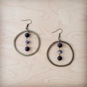 Western Copper Hoop Earrings w/ Labradorite Beads 200v