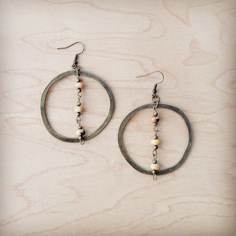Western Copper Hoop Earrings w/ Natural Agate Beads 200s