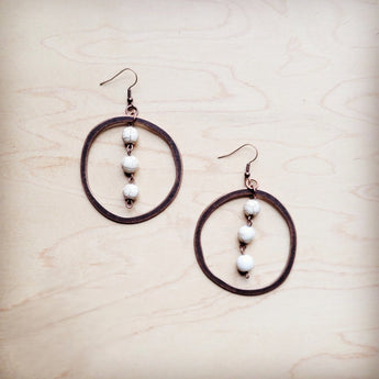Western Copper Hoop Earrings w/ White Turquoise Beads 224g