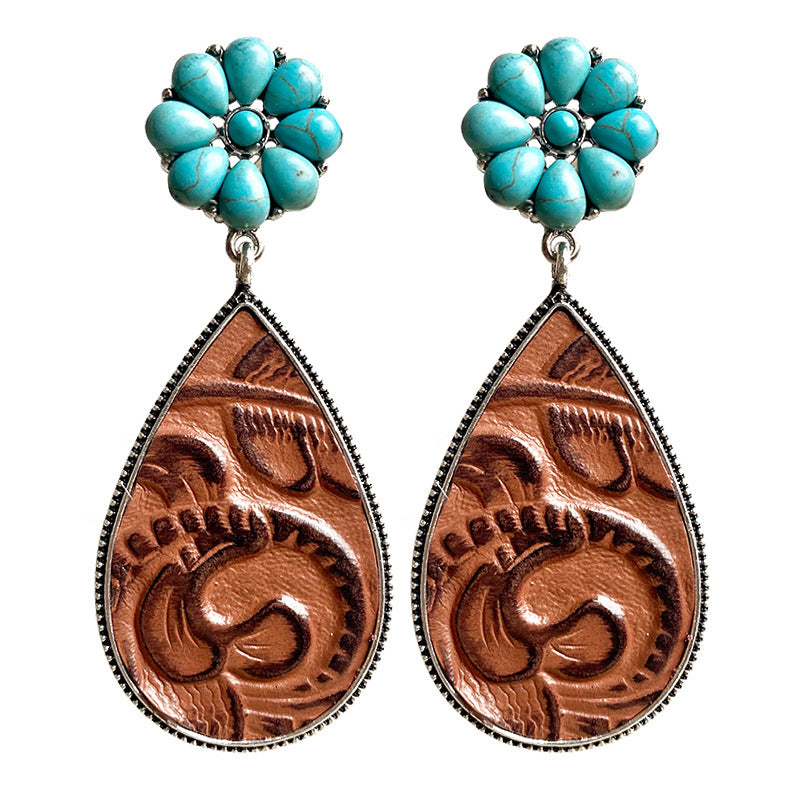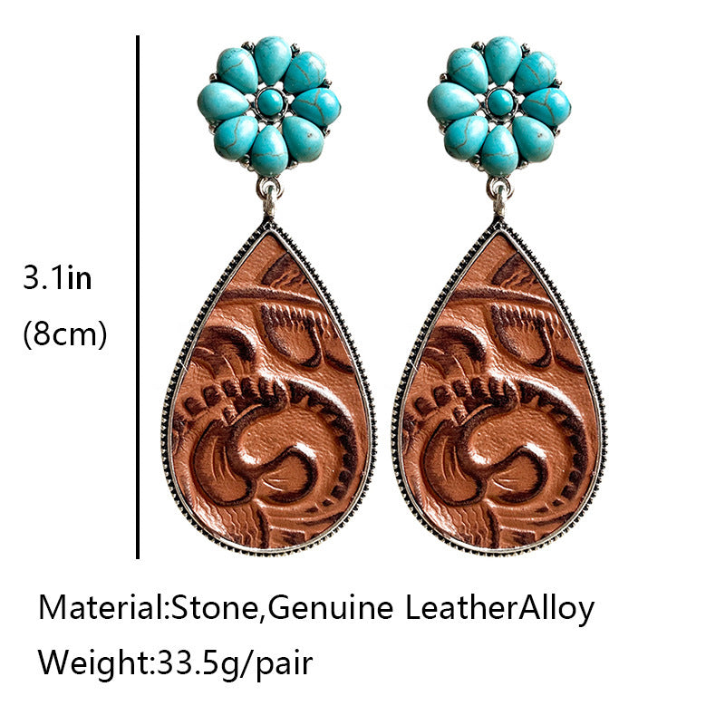 Western Embossed Leather Earrings Bohemian