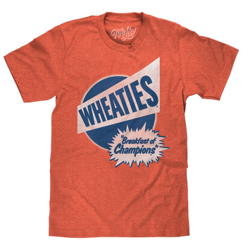 Of course we did! To help fans of this wholesome breakfast cereal show their love - we featured a graphic of the iconic Wheaties cereal logo and "Breakfast of Champions" phrase on this tee.