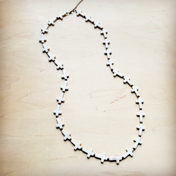 **White Turquoise & Wood Beaded Cross Necklace 258o