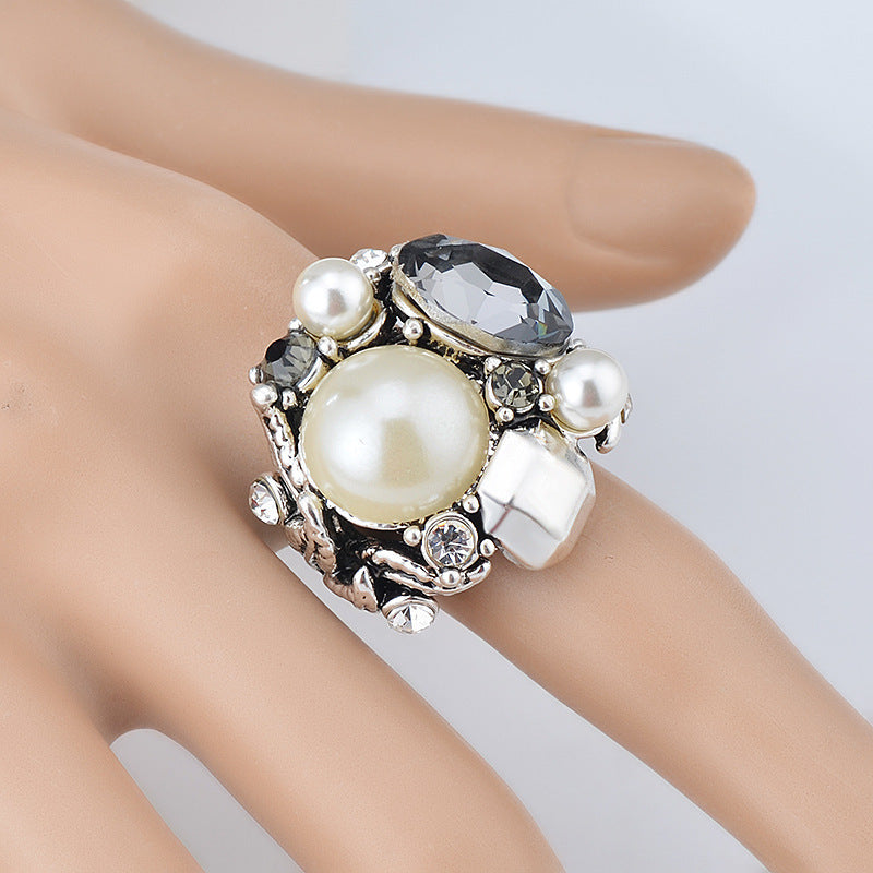 Wholesale Pearl Rhinestone Gem Ring