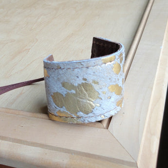 - Spice up your boho fashion jewelry collection with this wide leather cuff bracelet! Handmade with genuine, hair-on-hide leather, this unique cuff bracelet is the perfect statement piece to mix in with your other boho accessories. Wear it by itself or stack it with other pieces from our bracelet bar to create your own look. Order now!