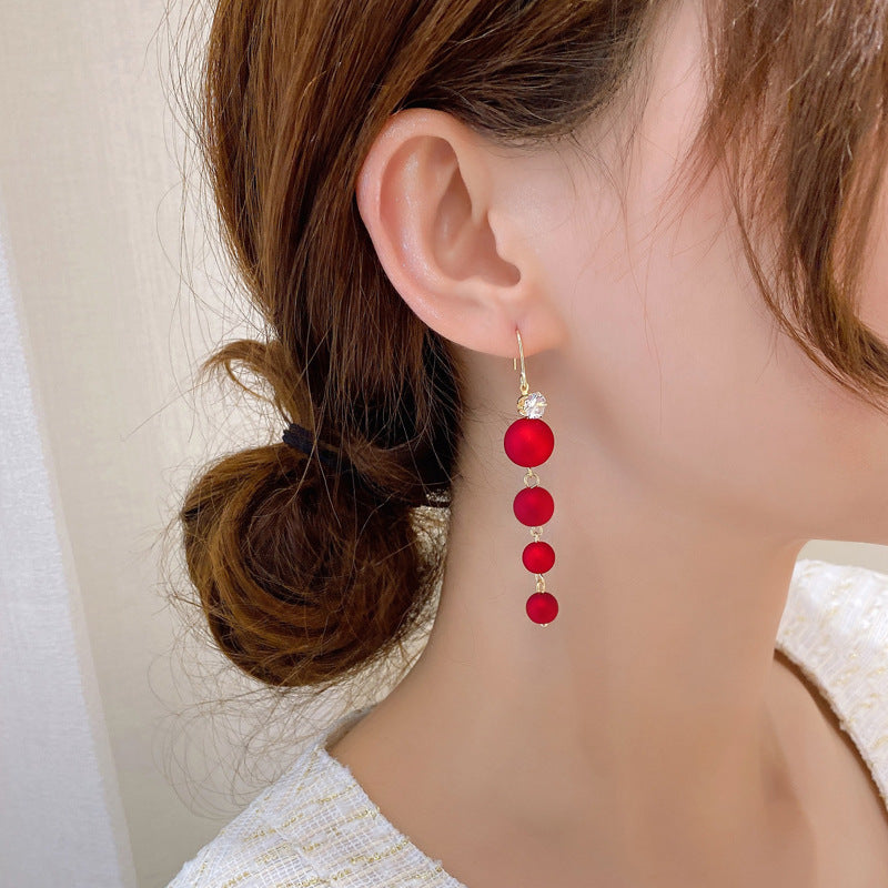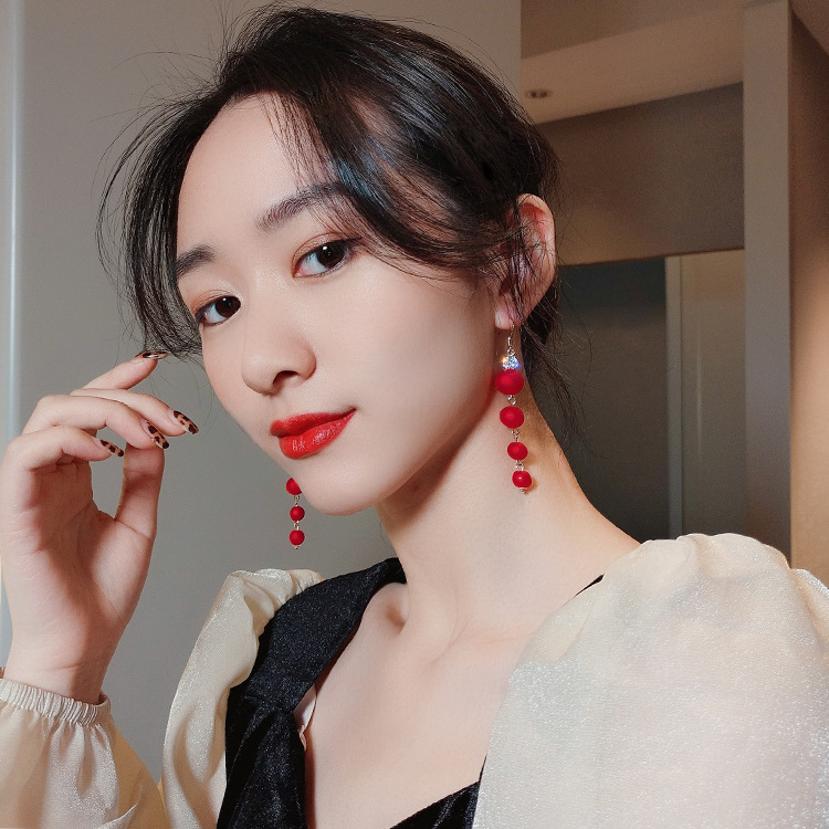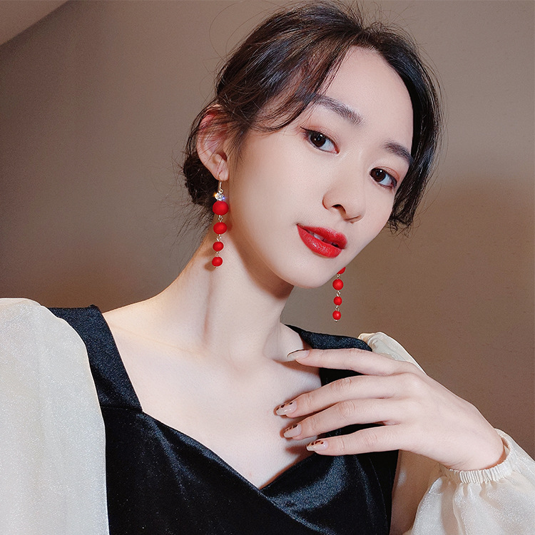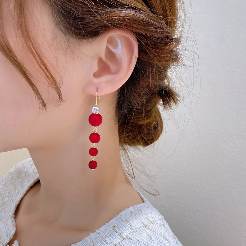 Color: white pearl tassel earrings, Red Pearl tassel earrings