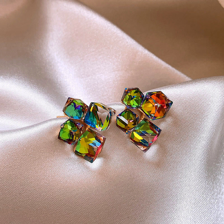 Women's Fashion Colorful Square Crystal Stud Earrings