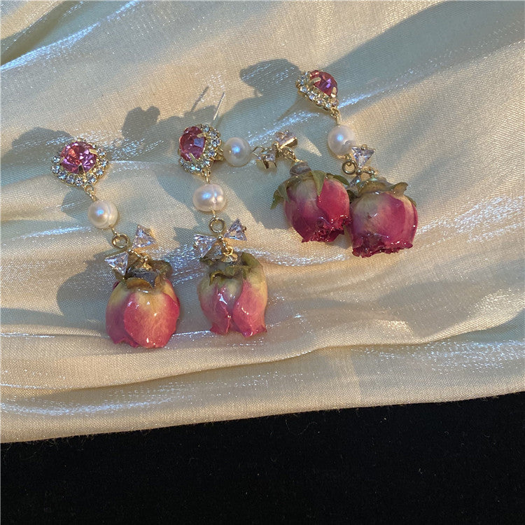 Women's Retro Natural Immortal Flower Earrings Niche Design