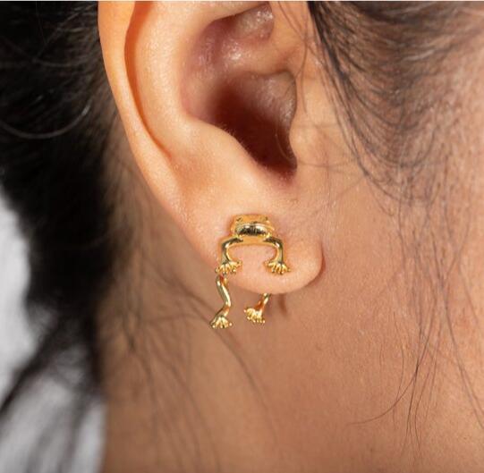 Women's Vintage Silver Frog Cat Earrings