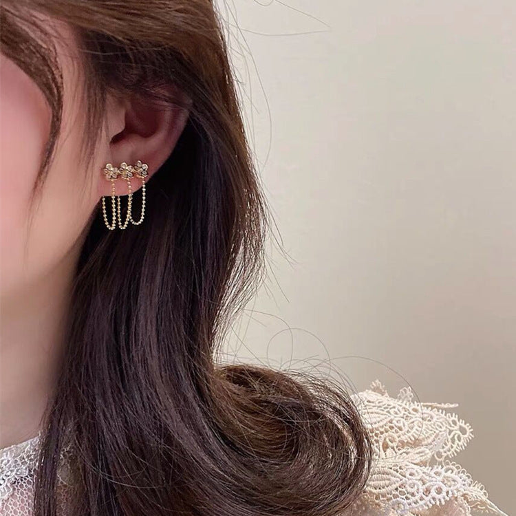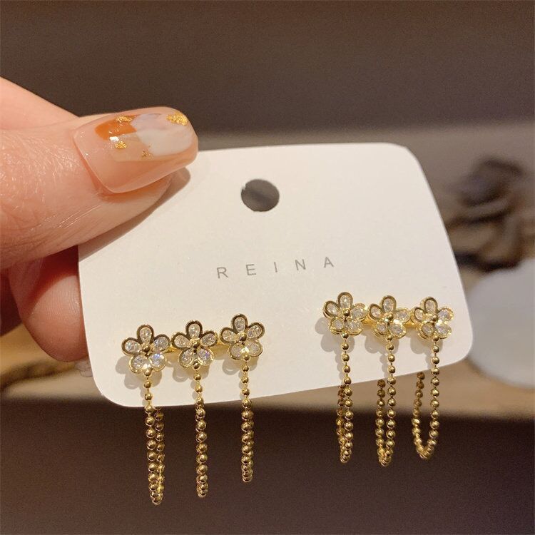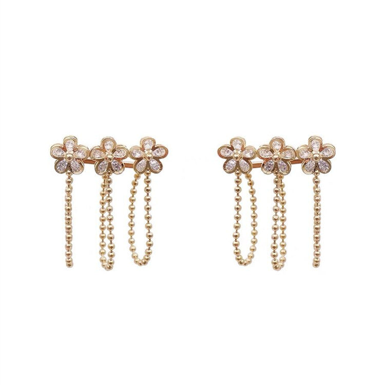 Zircon Flower Tassel Earrings