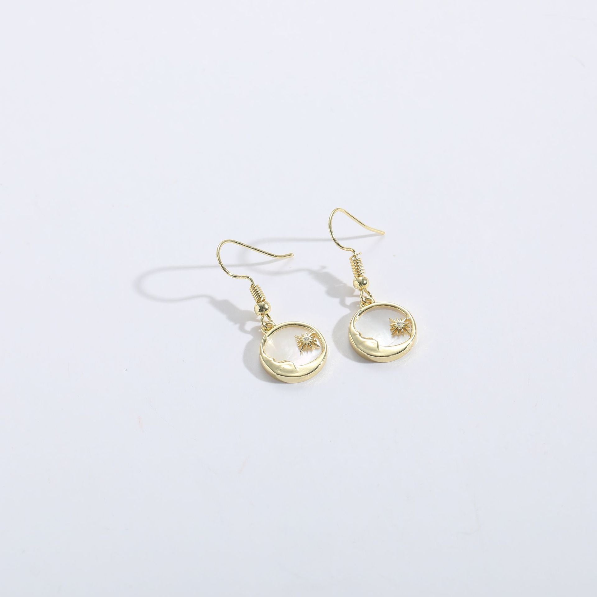 Zircon Gold Earrings Sun Moon Shell Ornament 14k Real Gold Copper Jewelry