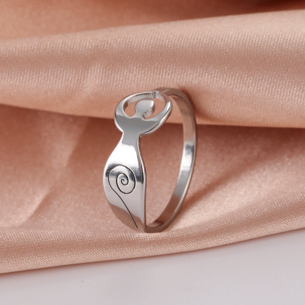 Aerobics Yoga Girls Raising Hands Characters Stainless Steel Rings