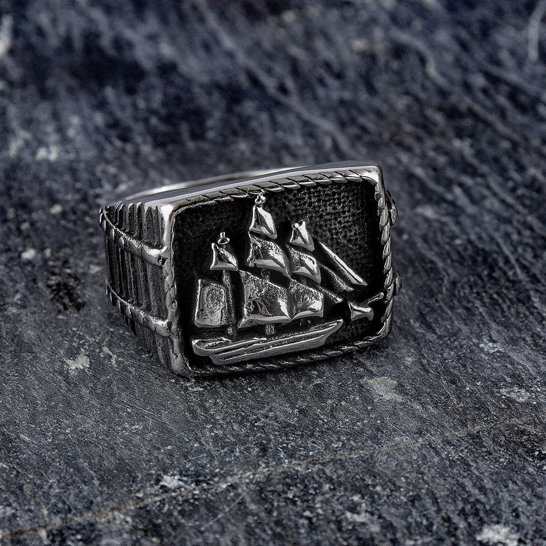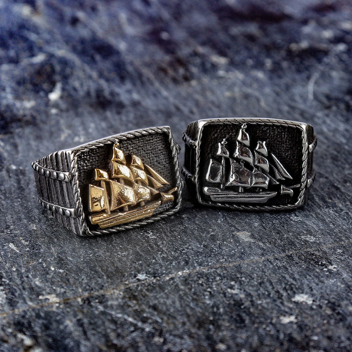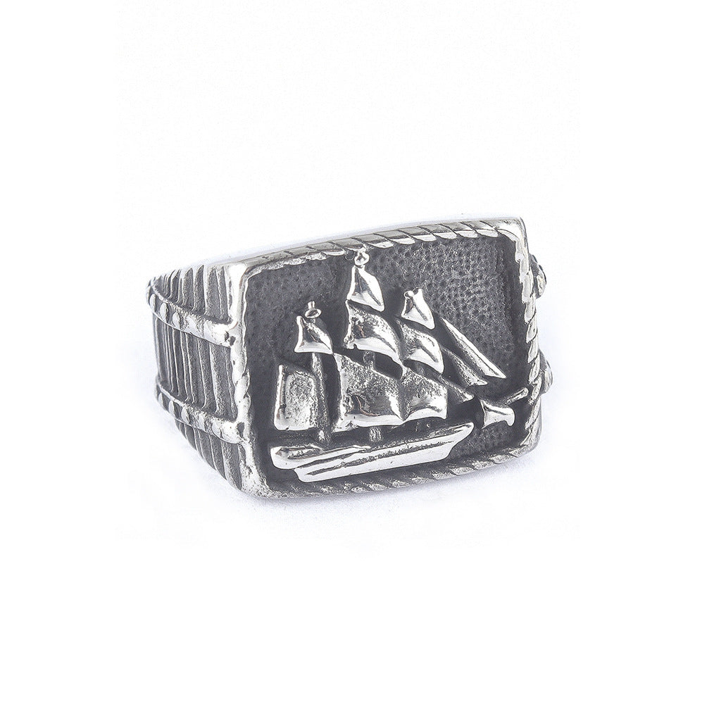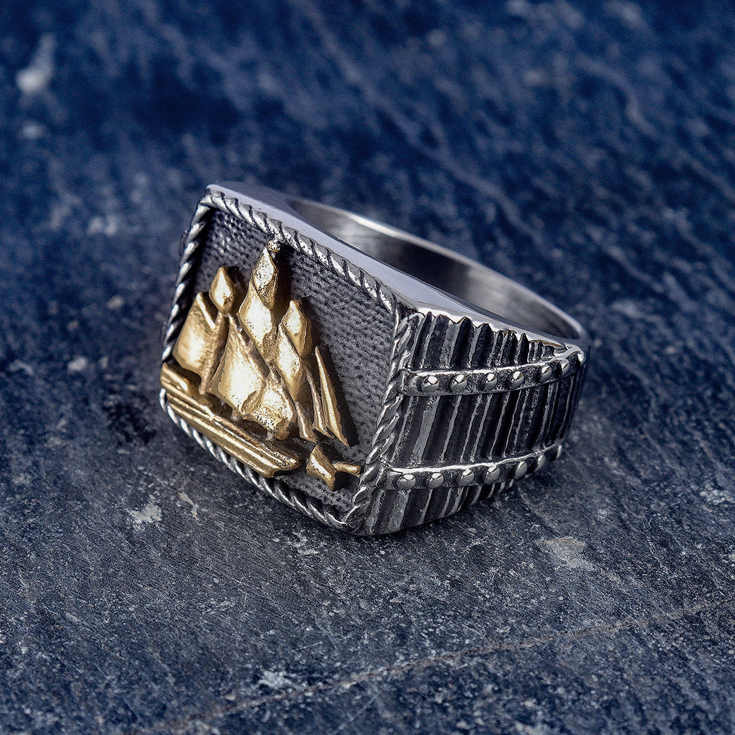 Fashion Statement Sailboat Pattern Two-tone Ring