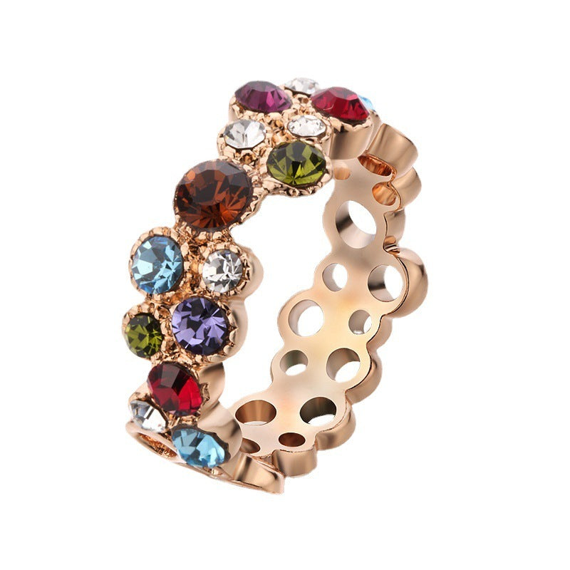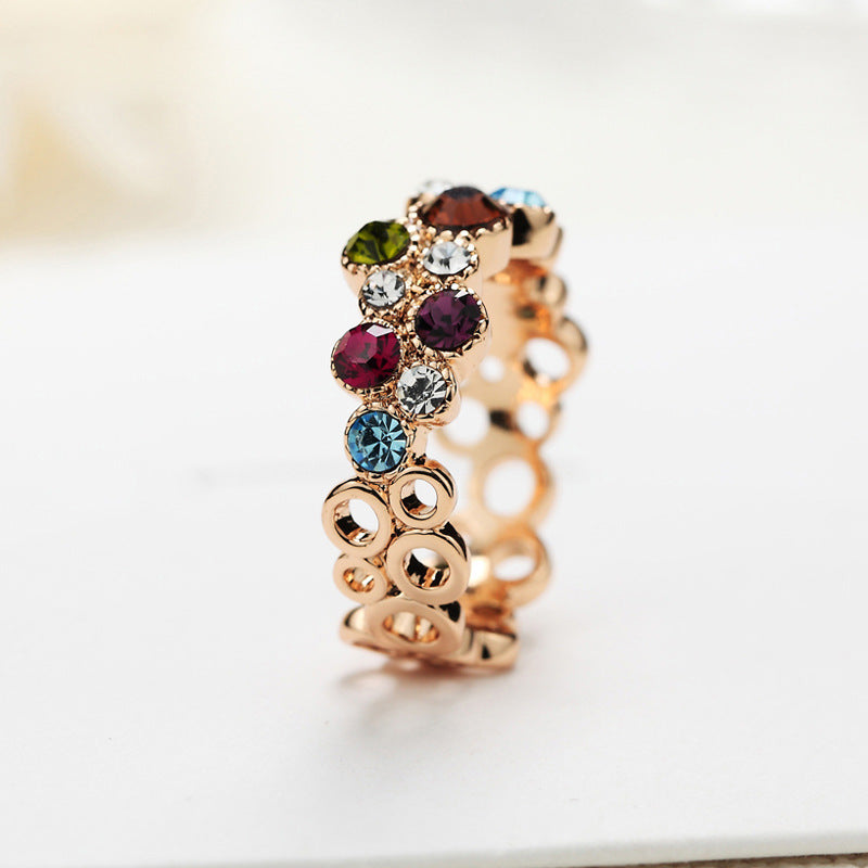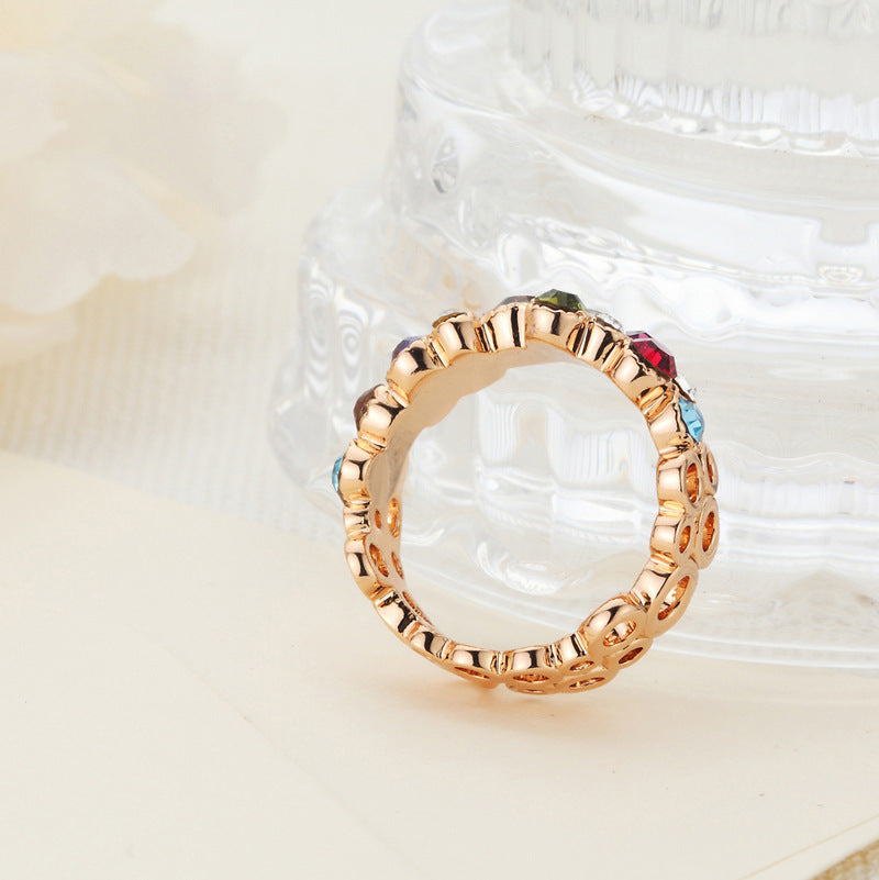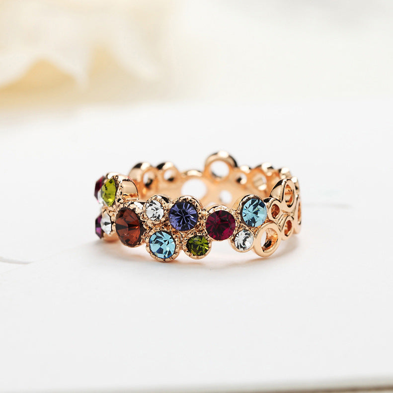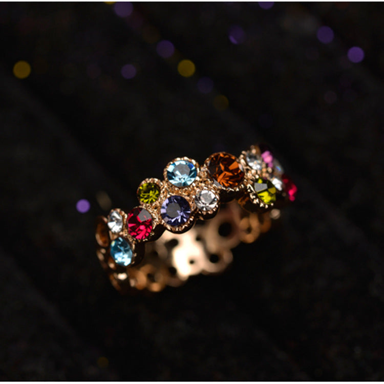 Temperament Color Crystal Ring Female Simple Small Student Jewelry