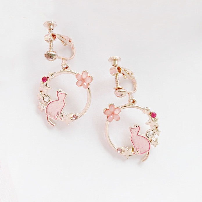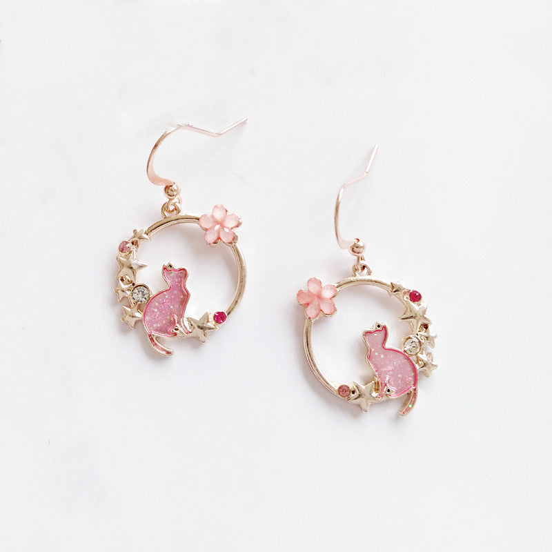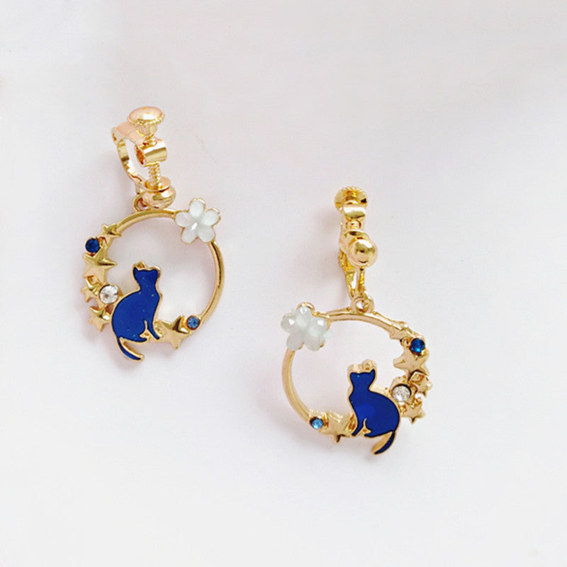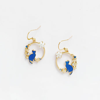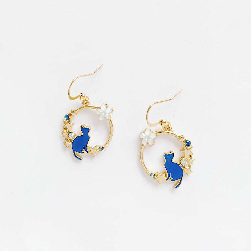 Cute Blue Kitten Earrings Simple Drip Oil