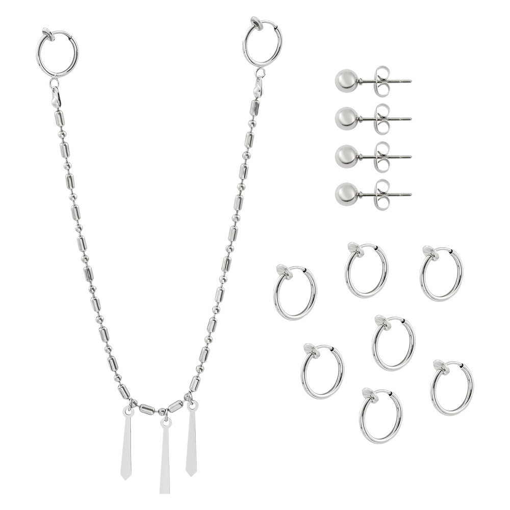 Earrings And Lip Nails Stainless Steel Cool Cos Suit