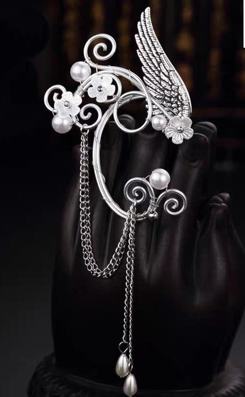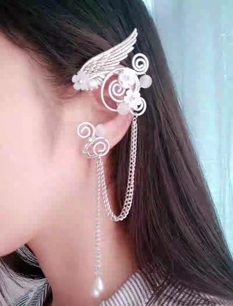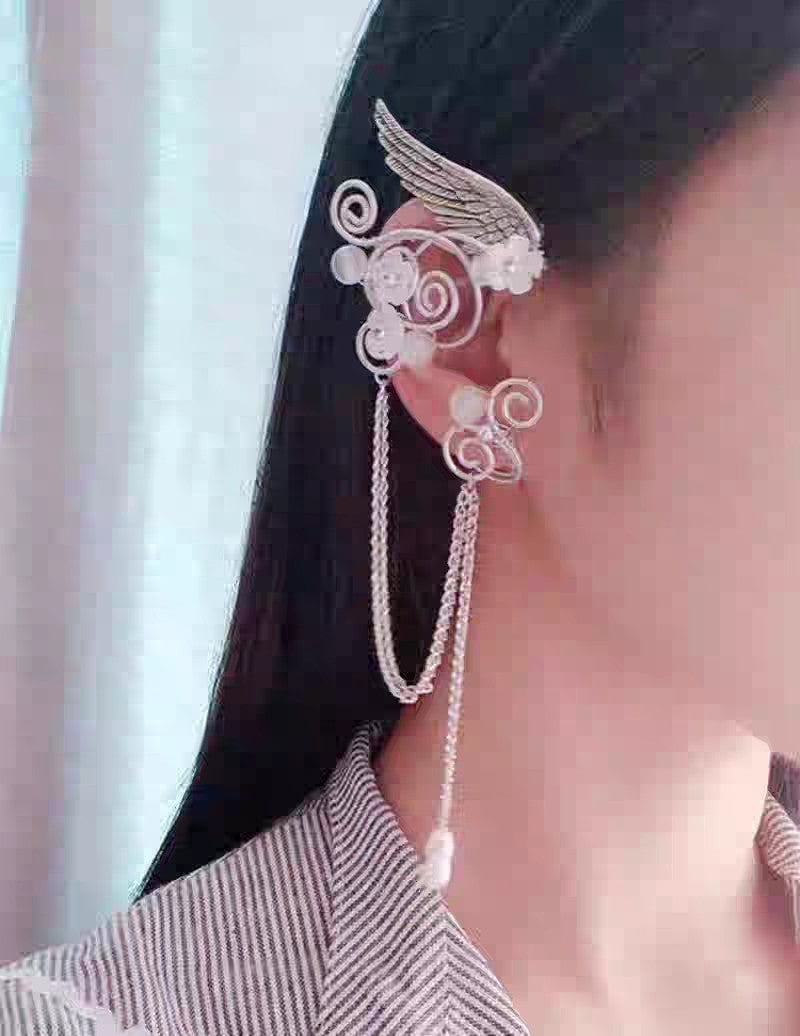 Qingqiu Fox Antique Ear Clips Long Tassel Elf Earrings