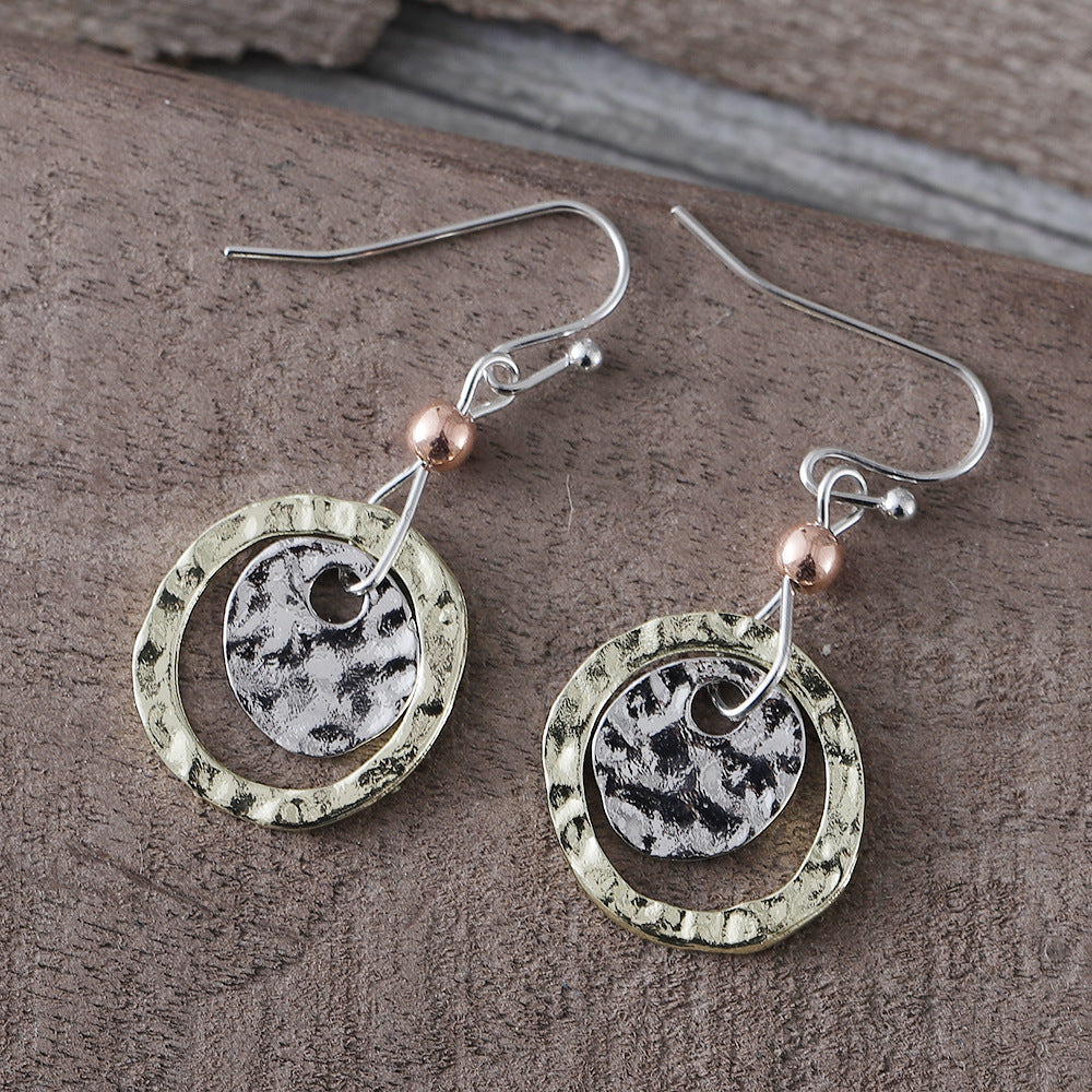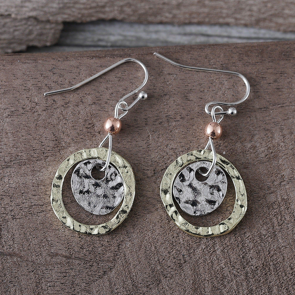 Retro Simplicity Coin Ring Overlapping Two-tone Earrings