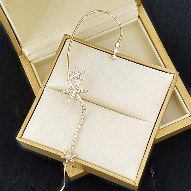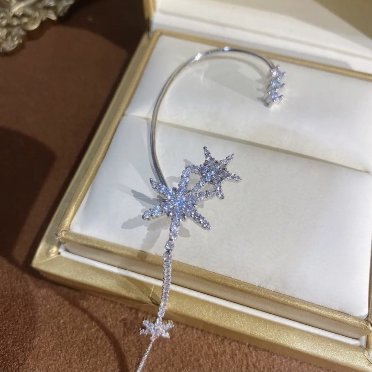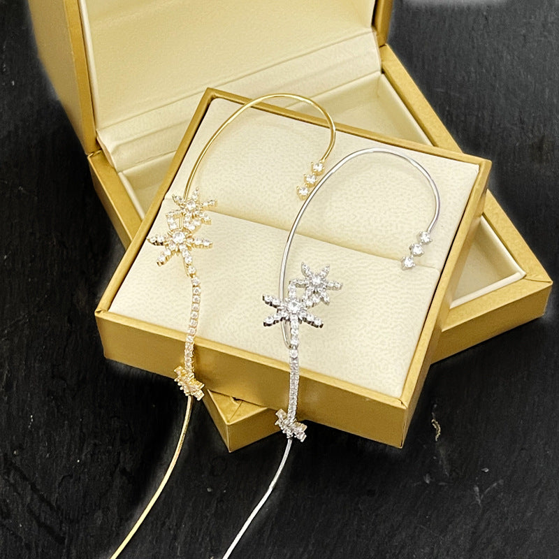 Snowflake Zircon Earrings Long Tassel Without Piercing