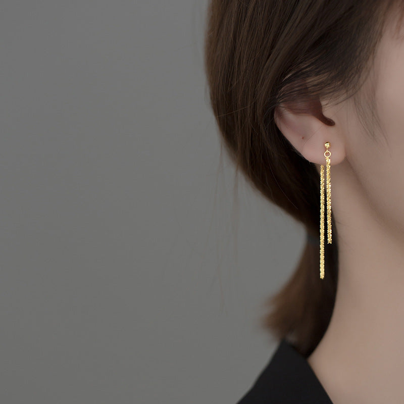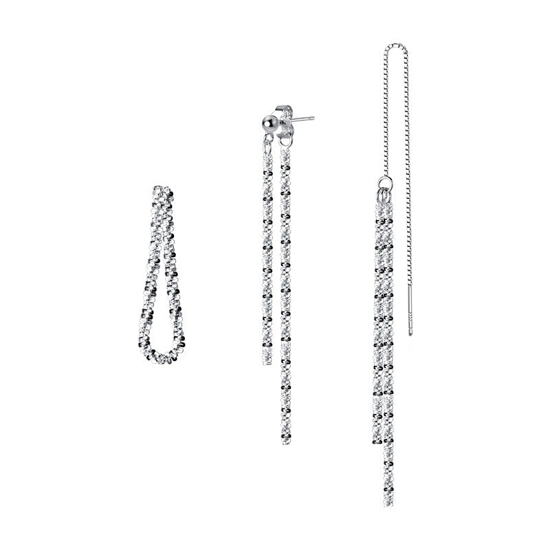Sparkling S925 Silver Gypsophila Chain Tassel Long Earrings