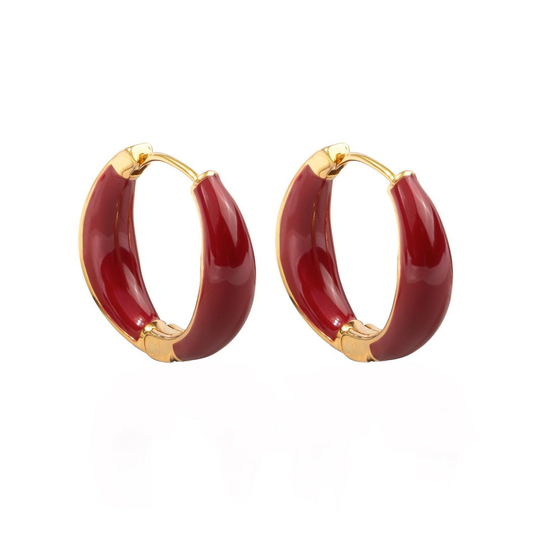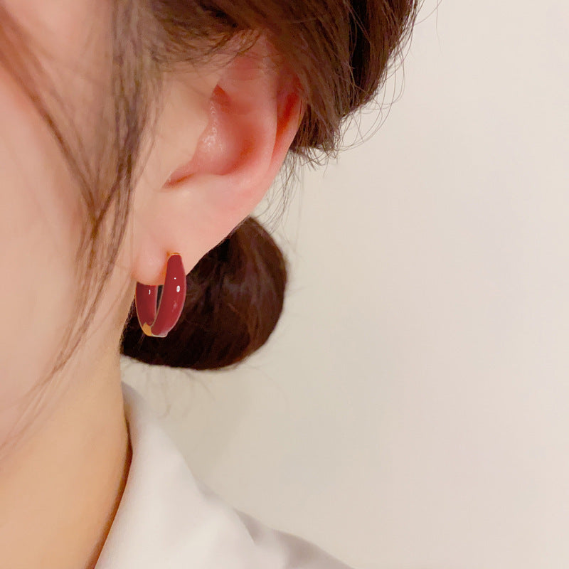 Wine Red Pigment Ring Earrings High-grade Female Simple