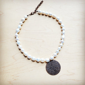 Freshwater Pearl Collar Necklace w/ Copper Scroll Pendant 260a